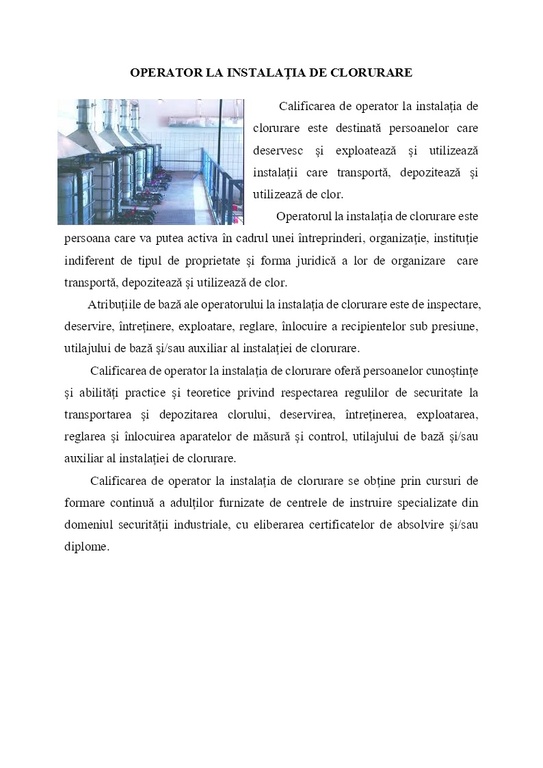 Operator la instalația de clorurare
